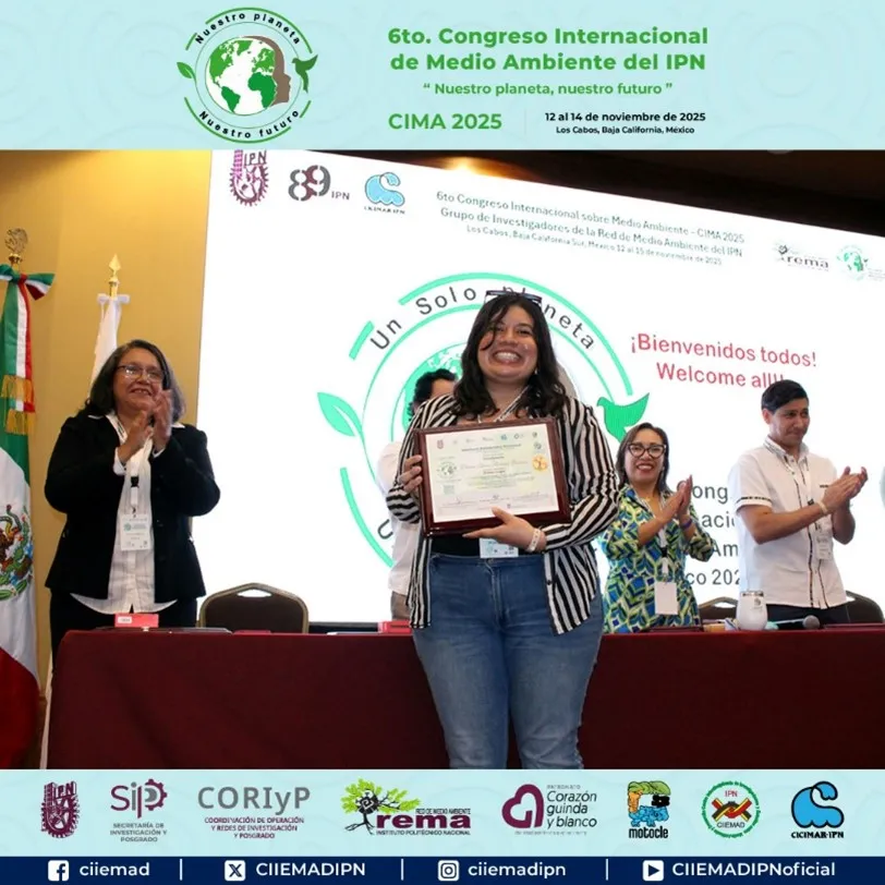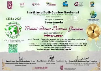 La alumna Demmi Sharon Blancas Guerrero ganó el primer lugar por la ponencia presencial con el trabajo titulado “Módulos de sensores de bajo costo como herramienta complementaria en el monitoreo de contaminantes atmosféricos”, destacando entre 297 participantes en la misma modalidad.
