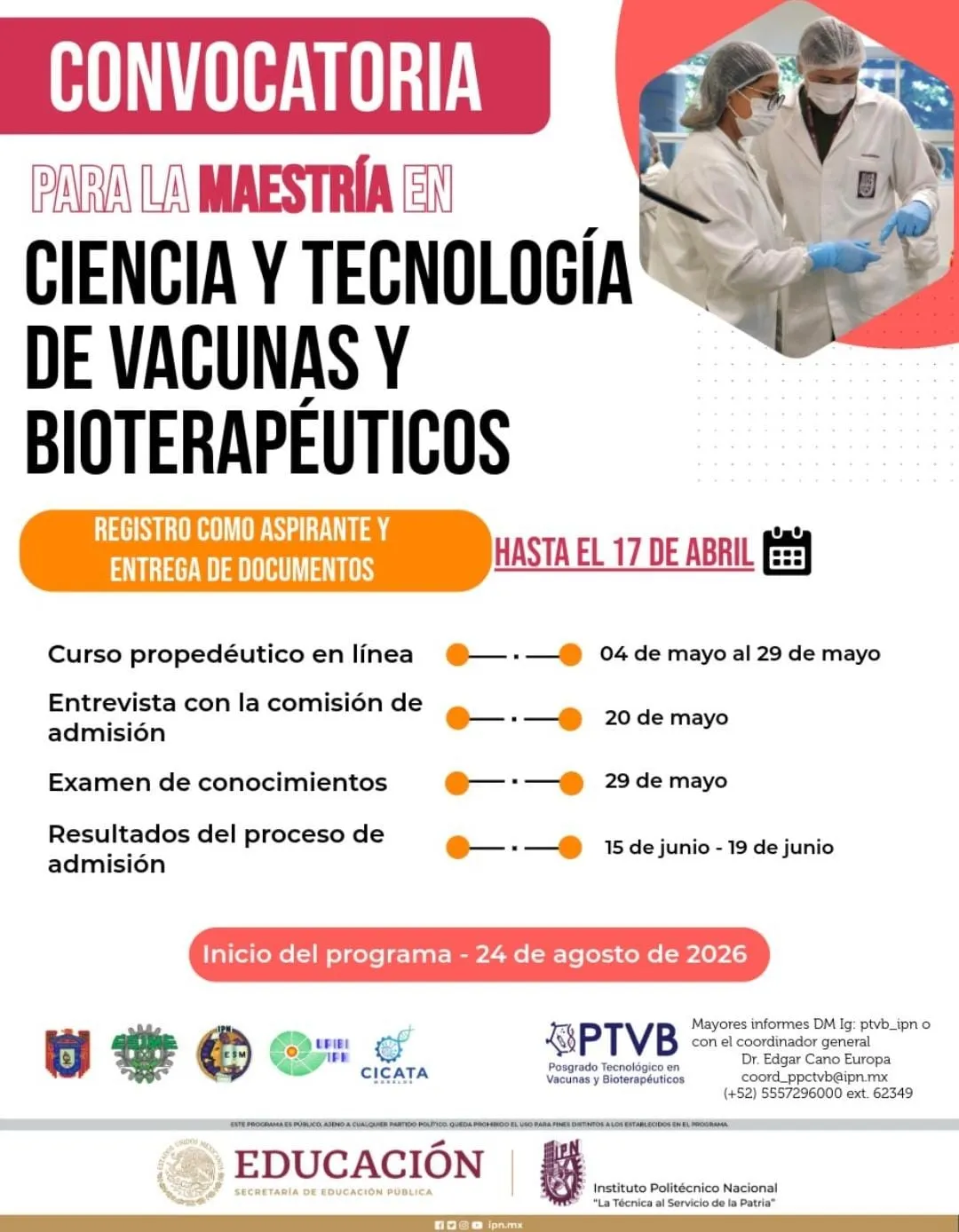 Egresados de licenciaturas en las áreas de medicina, química, biología, biotecnología, ingeniería química, industrial, de bioproceso u otras ingenierías y áreas afines que tengan interés en la investigación y el desarrollo tecnológico enfocado en vacunas y bioterapéuticos para participar en la atención de enfermedades infecciosas y problemas de salud crónico- degenerativos. Deberán contar con habilidades de comunicación oral y escrita, aptitudes de motivación, trabajo en equipo, planeación, organización y valores de honestidad, respeto e integridad